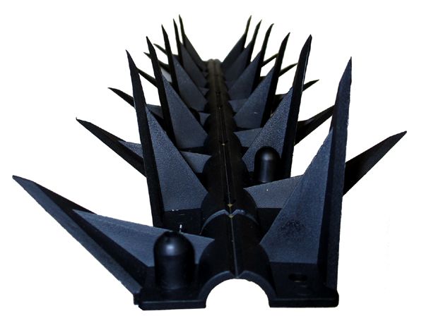 Stegastrip spikes are actually made from rugged, weather-resistant, UV stabilised polypropylene plastic that’s flexible, allowing the strips to be contoured to fit various fences, walls and gateways. The spikes are designed to look threatening and cause a high level of discomfort without causing any harm which is why they work to keep both people and animals from climbing over them.