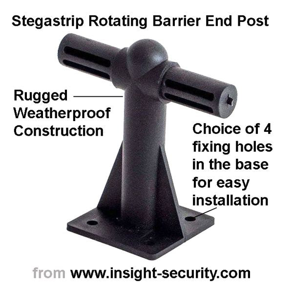Utilising the standard Stegastrip component, and special mounting posts, Stega Rota-Barrier, is an innovative rotating anti climb spike type barrier.