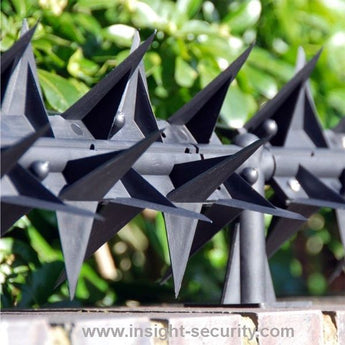 The Stegastrip anti climb spike system uses an innovative design which makes these harmless, plastic spikes look like they are made from wrought iron. The aggressive appearance immediately acts as a highly effective visual deterrent to any would-be intruder or climber.