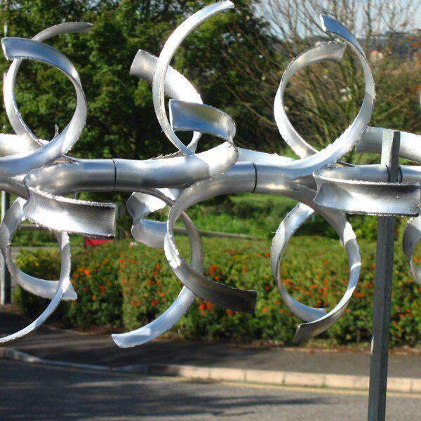 The interlocked pairs of vanes form a bulky and discouraging curved six pronged barrier some 400mm in overall diameter, which is designed to be difficult to climb over, without the risk of causing life threatening injury.